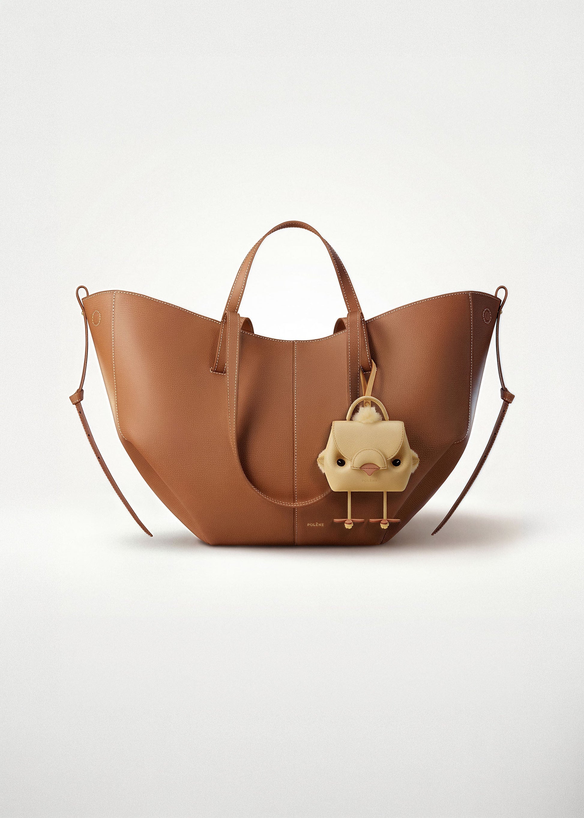 A l’instar du modèle Numéro Un, le charm s’ouvre et se referme grâce à un empiècement demi-lune aimanté. À l’intérieur, des boutons-pression structurent les plis du cuir et peuvent être ouverts pour en moduler la forme.